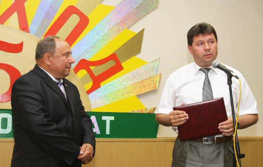 22 июня в конференцзале ОАО АК “Восход” состоялось торжественное чествование юбиляра — директора агрокомбината Виктора Федоровича Пинчука. Почетные грамоты Министерства сельского хозяйства и продовольствия, Могилевского областного исполнительного комитета, Комитета по сельскому хозяйству и продовольствию Могилевского облисполкома вручил юбиляру первый заместитель председателя облсельхозпрода В.С.Долженков. С теплыми словами поздравлений Почетную грамоту Палаты представителей Национального собрания Республики Беларусь передал В.Ф.Пинчуку депутат Палаты представителей А.И.Розганов. От Могилевского областного Совета депутатов Почетную грамоту с пожеланиями новых трудовых успехов юбиляру вручил председатель Могилевского областного Совета депутатов В.И.Пантюхов. С пожеланимями крепкого здоровья и долголетия в адрес юбиляра Почетную грамоту Могилевского райисполкома В.Ф.Пинчуку вручил председатель Могилевского районного исполнительного комитета Д.Д.Гоборов. Почетную грамоту от Могилевского Совета депутатов со словами поздравлений в адрес юбиляра В.Ф.Пинчуку вручил председатель районного Совета депутатов В.А.Соловей.