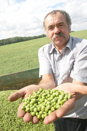 На полях ОАО «Фирма «Кадино» полным ходом идет уборка зеленого горошка. Как рассказал главный агроном по открытому грунту А.Е.Кривулькин, посевы зеленого горошка занимают 300 гектаров, из которых 100 (или 30 процентов от задания) — убраны, а 300 тонн зеленого горошка уже поступили на ОАО «Быховский консервно-овощесушильный завод».