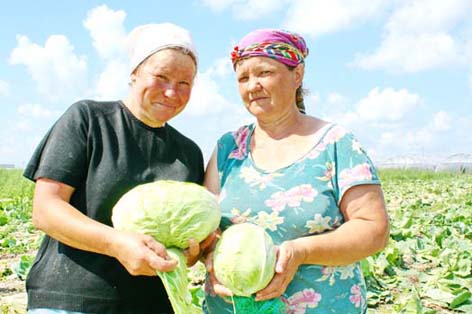 А на соседнем поле идет выборка огурцов. Несмотря на жаркий полдень, все трудятся быстро, и за неделю работ в хозяйстве уже собрано 15 тонн огурцов.
