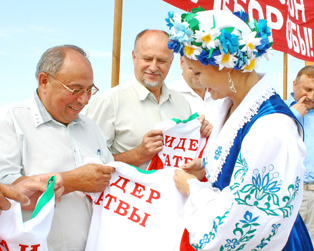 Старшыні аблвыканкама быў паднесены ад працаўнікоў Магілёўскага раёна сноп з сёлетняга ўраджаю і прыгожы духмяны каравай. У сваю чаргу, адзначыўшы вялікую каштоўнасць гэтага падарунка, П.М.Руднік агучыў рашэнне аблвыканкама ўзнагародзіць хлебаробаў Магілёўскага раёна сертыфікатам на 100 мільёнаў рублёў, які губернатар уручыў старшыні райвыканкама Дз.Дз.Гобараву.