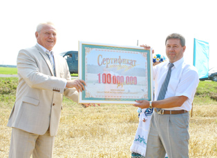 Нягледзячы на гарачую пару, гэту падзею нельга было пакінуць без увагі. Ушанаванне перадавікоў адбылося на палетках ЗАТ АК “Зара”, гаспадаркі, якая на працягу ўборачнай кампаніі не ўступае лідэрства, і дзе экіпаж у складзе У.В.Корсака і Р.С.Багачова першым у краіне намалаціў тысячу тон хлеба, а таксама раней за ўсіх у вобласці пераадолеў двух- і трохтысячныя рубяжы і, зноў жа, стаў першым чатырохтысячнікам у рэспубліцы.