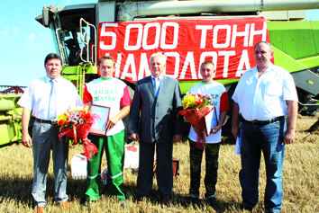Мне приятно еще раз поздравить трудовые коллективы неоднократных победителей республиканского соревнования на уборке зерновых и зернобобовых культур ЗАО АК «Заря» и ОАО АК «Восход», где получены самые большие намолоты и урожайность зерновых и зернобобовых культур.