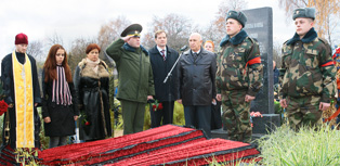 Раздался оружейный залп. Так в мирное время почтили память тех, кто погиб на полях сражений. К могиле были возложены венки и цветы.