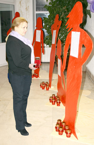 В фойе административного корпуса №2 по улице Заводской, где проходило мероприятие, были установлены силуэты женщин, погибших от насилия в семье. У подножья — зажженые свечи в память об умерших. Участники акции могли прочитать истории этих трагических случаев и выразить свою скорбь.