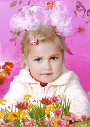 Оксана два раза в неделю посещает школу развития «Киндер-Клуб», в которой учится писать, читать, рисовать. Любимый предмет девочки – «Веселая математика». Оксана – очень старательная, коммуникабельная. Любит танцевать, играть, смотреть мультфильмы.