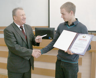 С пожеланиями дальнейших успехов, Дипломы и денежные премии от Могилевского областного комитета профсоюза работников АПК учащимся, защищавшим проект на республиканском конкурсе, Павлу Мурашко и Николаю Сушинскому, вручил член областного комитета профсоюза работников АПК, председатель райкома профсоюза работников АПК В.И.Розганов.