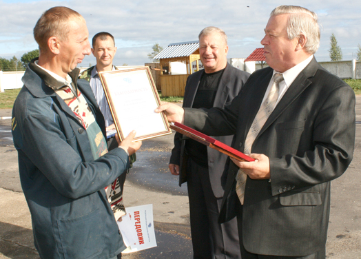 На зерносушильном комплексе хозяйства заслуженные награды лучшим хлеборобам от Совета Могилевского областного объединения профсоюзов и райкома профсоюза работников АПК вручили председатель обкома профсоюза работников культуры В.А.Афанасенко и председатель РК профсоюза работников АПК В.И.Розганов. При этом прозвучали прекрасные пожелания крепкого здоровья, благополучия и скорейшего завершения уборочной страды.