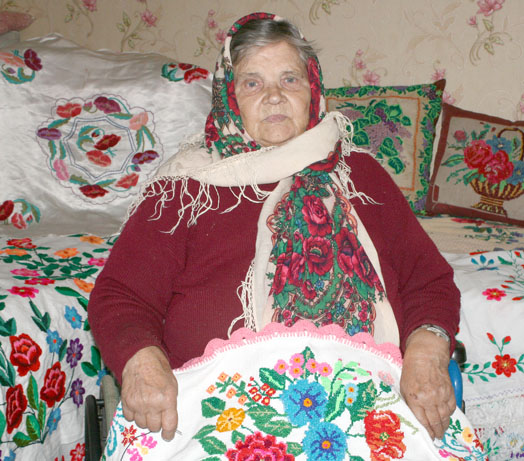 Т.Е.Азаревич из Могилеского района вышивает гладью…