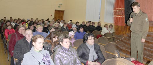 Начальник Могилевского РОЧС М.С.Миколуцкий, выступая перед сельчанами, отметил, что проведение сельских сходов, в ходе которых с населением обсуждаются проблемные вопросы противопожарной тематики, уже стало доброй традицией в работе РОЧС. Он рассказал о положении дел по пожарам в районе, привел статистические данные и определенные закономерности, выявленные при анализе причин возникновения пожаров. Здесь на первое место можно поставить употребление алкоголя и часто, как следствие, тунеядство. До населения были доведены требования к печному отоплению, средствам противопожарной защиты.