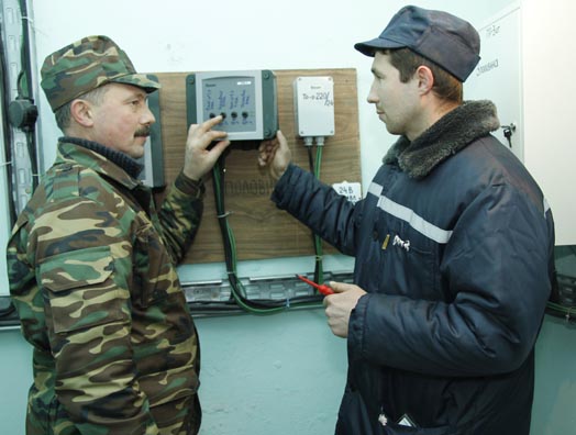 На снимке: начальник участка электроснабжения В.А.Шакуро и слесарь Д.В.Левкин налаживают систему обеспечения и поддержки микроклимата в свиноводческих помещениях.