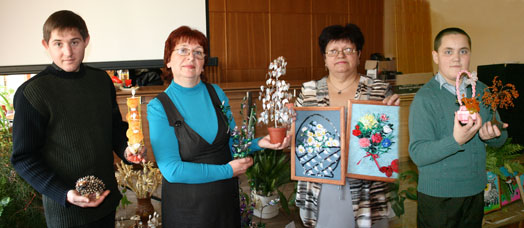 Свидетельством тому является выставка подделок людей с ограниченными возможностями, среди которых особый восторг вызвали работы А.В.Барановской, А.А.Барановской, Л.Ф.Пляскиной, Г.С.Гапеевой, Ж.Ходасевич, С.Цветкова, Д.Малихова, С.Щербо, М.Дубровского.
