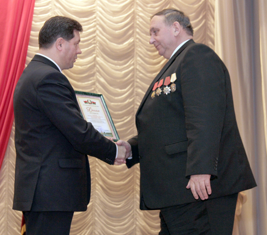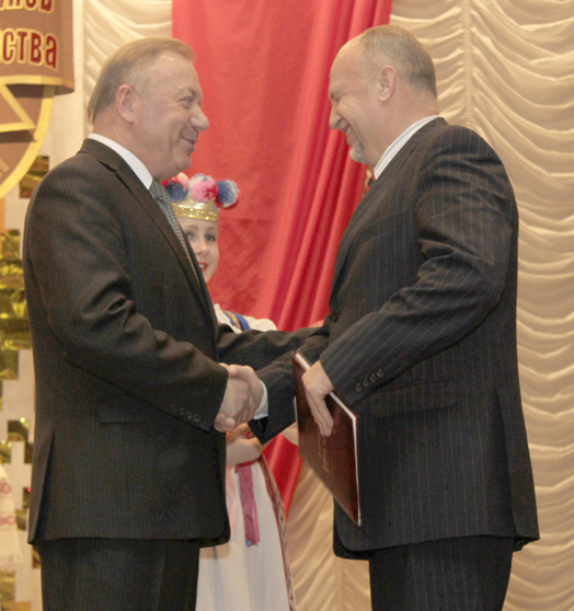 А.И.Розганов искренне пожелал всем здоровья, мира, добра и благополучия, вручил Почетную грамоту областного Совета депутатов председателю СПК «Полыковичи» А.Н.Корневу и благодарственное письмо руководителю ОАО «Борок-агро» Ю.С.Ждановичу.