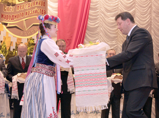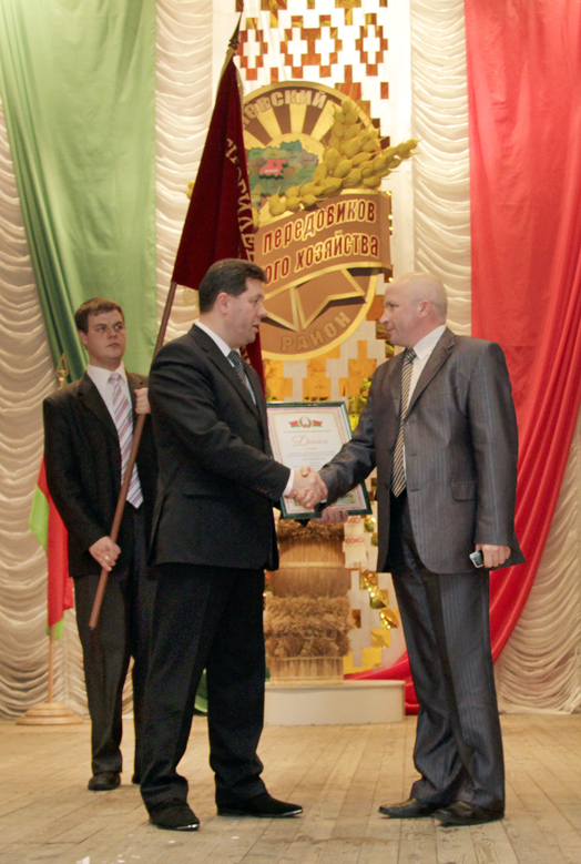 Особые слова благодарности за труд выразил Д.Д.Гоборов передовикам: комбайнеру ЗАО «Агрокомбинат «Заря» С.И.Романенко, который намолотил в прошлом году 4201 тонну зерна и стал победителем республиканского соревнования. Небывалых в истории района результатов достигли операторы машинного доения филиала «Серволюкс Агро» В.М.Авдеева и Л.В.Демиденко, надоившие более 9 тысяч килограмм молока от каждой коровы. 902 грамма среднесуточный привес поросят получила оператор ОАО АК «Восход» З.Ф.Яворская. 18380 тонн кормов заготовил на кормоуборочном комбайне тракторист-машинист ОАО «Тишовка» Ф.Д.Козик. Оператор бройлерного производства филиала «Серволюкс Агро» Ю.Н.Вижинис достигла 65,6 грамма среднесуточного привеса на выращивании молодняка птицы.