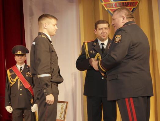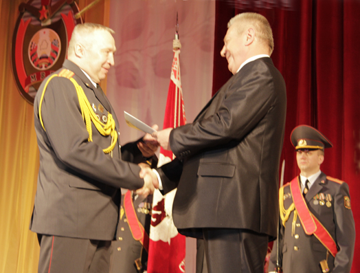 Благодарность колледжу за верность традициям и воспитание квалифицированных кадров выразил выпускник колледжа 1982 года, заместитель председателя республиканского совета Белорусской общественной организации ветеранов органов внутренних дел и внутренних войск, генерал-майор милиции в отставке Б.В.Алданов, от имени Совета наградил знаком «За адзнаку» В.Н.Кончатова. Почетные грамоты получили лучшие сотрудники милиции и преподаватели учебного заведения. Благодарность объявлена курсантам факультета милиции, рядовому А.С.Семиненко и старшине милиции Ю.С. Сазанкову.
