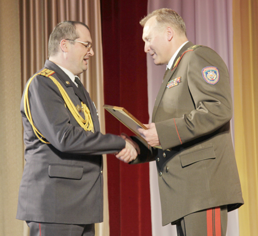 Министр по чрезвычайным ситуациям Республики Беларусь В.А.Ващенко, отметив профессионализм и практическую востребованность выпускников колледжа, вручил Почетные грамоты преподавателям ВУЗа МВД. В день рождения колледжа Владимир Александрович преподнес памятный сувенир.