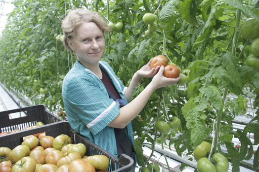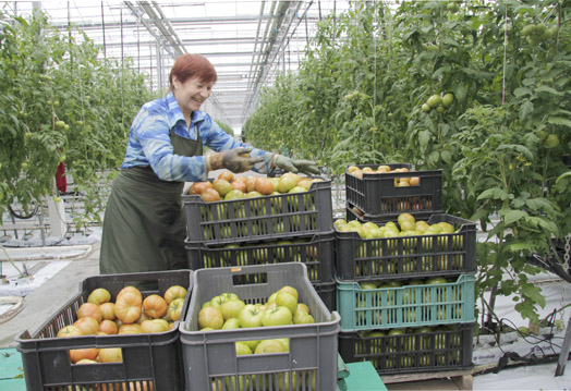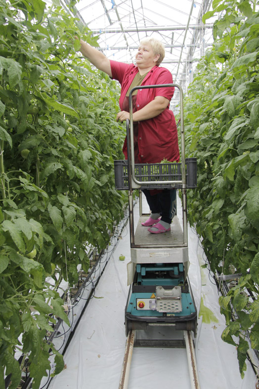 Благодаря новейшим технологиям в этом году новый урожай витаминной продукции собран гораздо раньше, чем в прошлом. Удачными для вызревания томатов оказались несколько солнечных дней марта. К слову сказать, на тепличном комбинате все было подготовлено заранее: своевременно выращена рассада, в оптимальные сроки в пакеты с минеральной ватой распикированы саженцы. К каждому растению подведена система полива и подкормки, что гарантирует высокое качество, причем без нитратов. Тепличницы, соблюдая агрономические требования, освободили растения от лишних листьев и побегов. Сейчас стебли достигают до двух метров. Огромными гроздьями на каждом из них — томаты. Чтобы растения не прогибались под весом спелых помидоров, – гибкой лиане порой приходится выдерживать до сорока килограммов – овощеводы их тщательно подвязывают. За каждой из тепличниц закреплены 834 м2 площадей.