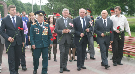 Выступая перед присутствующими, заместитель председателя облисполкома В.А.Малашко отметил, что в памяти благодарных потомков навсегда остался подвиг солдат и командиров, 23 дня защищавших Могилев от немецко-фашистских захватчиков. Ежегодно на этом священном месте проходят мероприятия патриотической направленности. Символично, что в мероприятии приняла участие молодежь двух соседних государств Беларуси и России.