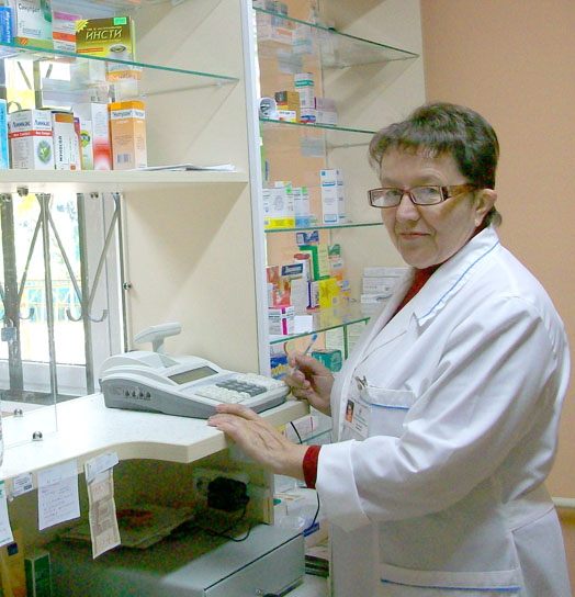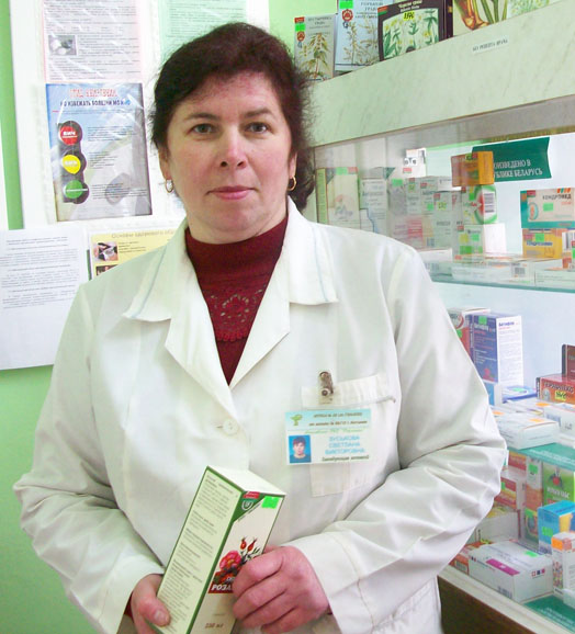 Более 27 лет работает в аптеке №69 аг.Дашковка Людмила Ивановна Богданова. Аптека в Дашковке самая большая не только по площади, но и по наличию ассортимента лекарственных средств и других товаров аптечного ассортимента. Сейчас Людмила Ивановна работает одна, а лет 10 назад в этой аптеке трудились трое фармацевтических работников. Возглавлял аптеку более 40 лет заслуженный провизор Беларуси — Ефременко Федор Павлович, настоящий профессионал своего дела. Богданова Людмила Ивановна была фармацевтом-рецептаром: работала непосредственно с населением, реализовывала лекарства заводского производства, а Шустикова Лидия Порфирьевна фармацевтом-ассистентом: готовила растворы, отвары, порошки для больницы и населения. Лет 15 назад сельские аптеки были производственными, а сейчас только крупные городские аптеки по индивидуальному рецепту изготовят вам выписанную в рецепте пропись.