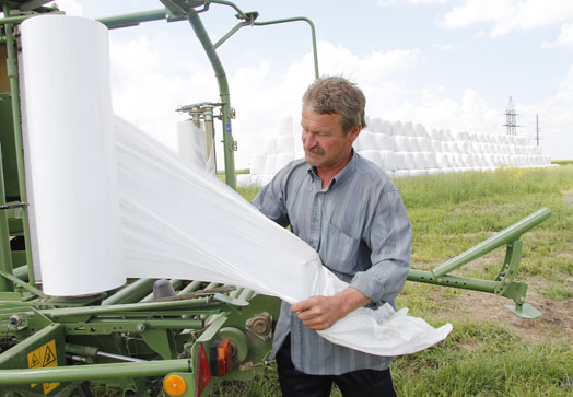Заместитель генерального директора сельхозпредприятия по растениеводству И.К.Мальчевский объяснил, что заготовка травянистых кормов в хозяйстве таким способом ведется второй год — новый пресс-подборщик, который не только формирует плотный валок, но и упаковывает его в специальную полиэтиленовую пленку (словно конфетку в фантик), был куплен три года назад. Пленка отличается большой эластичностью и устойчивостью к механическим повреждениям, а белый цвет «впитывает» меньше солнечных лучей, и сено в рулонах не перегревается.