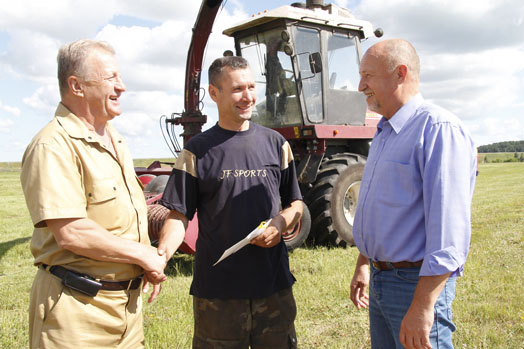 — Была бы погода! — улыбается Виктор Аркадьевич. В день он заготавливает около 200 тонн зеленой массы и беспокоится, чтобы успеть выполнить задание в погожие дни.