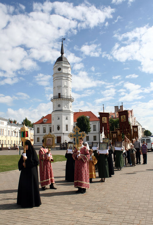 Крестный ход в честь Святых Царственных Мучеников и всех Новомучеников и Исповедников 20-го века прошел сегодня в Могилёве. В 10:00 процессия отправилась из Свято-Никольского женского монастыря в Храм Святых царственных мучеников и исповедников 20-го века, который находится в парке имени Горького.