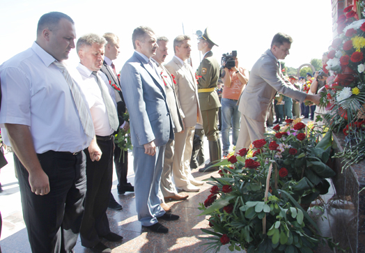 В эти светлые солнечные июльские дни наша страна отметила великий праздник – День Независимости Республики Беларусь. Кульминацией всех празднеств стало открытие в Минке площади Государственного флага. Различными культурно-развлекательными и тематическими программами был насыщен день 3 июля в Могилеве. Праздничная, по-особому торжественная атмосфера царила на мемориальном комплексе «Буйничское поле», где состоялся митинг, посвященный Дню Независимости Республики Беларусь. Возложить венки и цветы к памятнику, поклониться героям, освободившим мир от фашистской чумы, пришли руководители области, города, представители Советов депутатов, общественных организаций, трудовых коллективов, силовых структур, ветераны и молодежь.