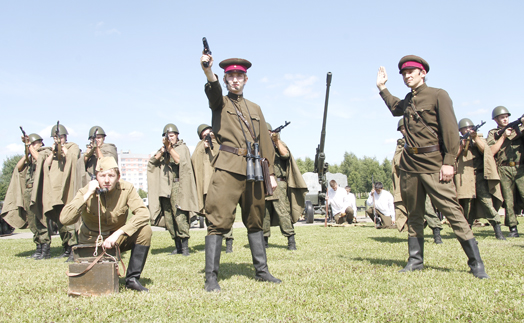 Театрализованная программа, которая следовала далее, включила в себя эпизод военных действий на Буйничском поле, ликующий День Победы, чествование ветеранов Великой Отечественной войны. Восхищение вызвало представление летчиков-спортсменов Могилевского аэроклуба. Пред-ставители нового поколения вынесли полотно с картой республики, на которой отмечены областные центры. «Это Беларусь – любовь моя», — пела молодежь. Праздничный салют и Гимн страны завершили мероприятие.