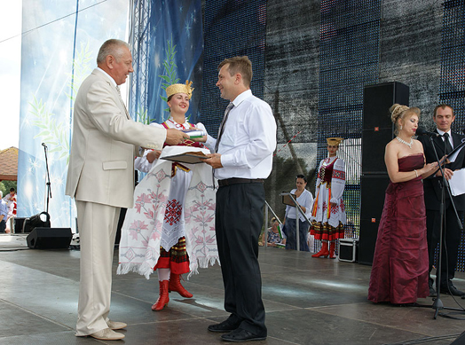 7 июля в рамках праздника «Александрия собирает друзей» на главной сцене состоялось награждение тружеников села. Вице-премьер Республики Беларусь Михаил Русый и председатель Могилевского облисполкома Петр Рудник вручили более чем ста передовикам агропрома награды республиканского и областного уровня.