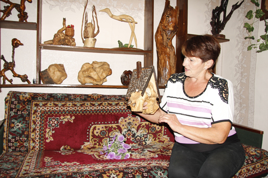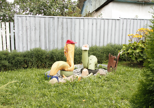 Надо ли говорить, что в далеком прошлом нестандартные «сокровища», принесенные из леса, надолго в доме не задерживались: родители не понимали интереса дочери и сжигали их в печи. Теперь же собственный дом и двор пенсионерки в д. Большая Боровка без замысловатых фигурок из капов, корней и веток уже не представишь. Они образуют различные композиции и имеют свое значение. Чувствуется, что в каждую скульптуру Галина Фоковна вложила душу, поэтому и может рассказывать часами, как за одним корнем три года в лес ходила, или как понравившуюся веточку у соседки в подарок на восьмое марта просила…