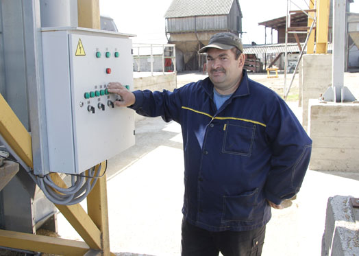 На зернотоку д.Михалево ОАО «Тишовка» Виктор Михайлович Кондратенко работает оператором КЗСК-30. Он является одним из опытных специалистов в хозяйстве, трудится здесь 22 года.