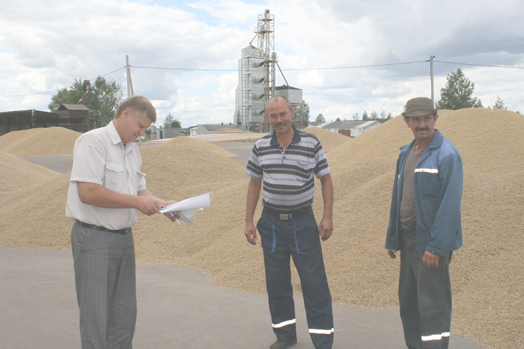 Сегодня в хозяйстве трудятся люди, истинно преданные делу, которому себя посвятили. И тут, несмотря на равные условия труда, появляются свои лидеры. Те, кто своим усердием, профессионализмом и напористостью достигает лучших результатов на уборке. Приятно отметить, что их трудолюбие не остается незамеченным. А.В.Прудников поздравил лучших тружеников хозяйства — хлеборобов-тысячников: экипажи комбайнеров Д.С.Ярошовца и А.М.Ляховца, Н.В.Герасимова и В.П.Кислякова, а также водителя А.М.Зуськова. Лидерам жатвы были вручены денежные премии.