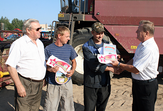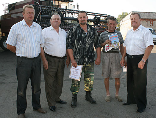 В этот же день профсоюзные лидеры посетили ОАО «Фирма «Кадино», где вручили грамоты и денежные премии передовым хлеборобам хозяйства – семейному экипажу комбайнеров Батовских и водителю В.В.Самсонову, ставшими первыми тысячниками в своем сельхозпредприятии.