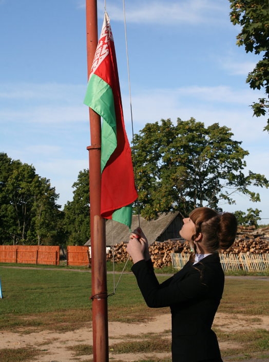 Право поднять флаг Республики Беларусь было предоставлено победительнице районной и областной олимпиад ученице 9 класса Ангелине Свинтиловой.