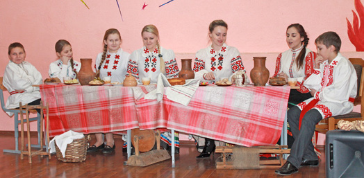 Юныя акцёры, вучні 6, 9, 11-х класаў, спявалі песні, частушкі, наладжвалі гульні, расказвалі вершы, загадвалі загадкі, танцавалі беларускія народныя танцы. Здзівіла гасцей і ўбранства сцэны, якую ўпрыгожвалі рэчы тагачаснага беларускага быту. На стале, старанна падрыхтаваным гаспадыняй, шмат беларускіх страў: бульбы, гуркоў, сала, дранікаў, каўбас.