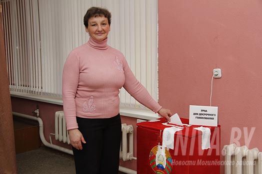 Бухгалтер ОАО «Борок-агро» Людмила Татько собирается на выходные дни съездить в Быхов в гости к сыну. Пришла проголосовать досрочно, так как, по её словам, является патриотом страны и считает, что каждый голос очень важен для будущего.