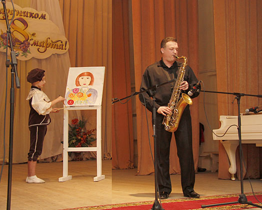 Прекрасно-символичным было начало мероприятия с трогающей сердце миниатюрой на сцене, где художник рисовал женщину с цветами под чарующие звуки песни «Я вам спою ещё на бис…»
