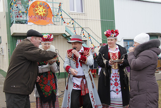 Цудоўную атмасферу свята стварылі работнікі мясцовага Дома культуры разам з удзельнікамі мастацкай самадзейнасці. Тэатралізаваная дзея “Гуляй, Масленіца!” была так  па-майстэрску  разыграна, што  здавалася  ўсё  яваю.  З  падзякай  за  бялюткі снег  і  цікавыя  гульні  праводзілі  Зіму,  якая  ў  адказ за дабрыню і пашану падаравала ўсім Масленіцу, каб  накарміла  яна  блінамі,  ды  павесяліла.  А  як заспяваў народны  ансамбль  народнай  песні “Прыпеўка” пад кіраўніцтвам Ніны Герасімёнак, дык падтанцоўваць узяліся ад малога да вялікага.масл 5