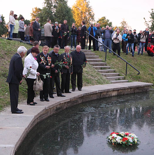 В память о погибших воинах была отслужена лития, после чего участники мероприятия спустили венок на воду озера Слёз.