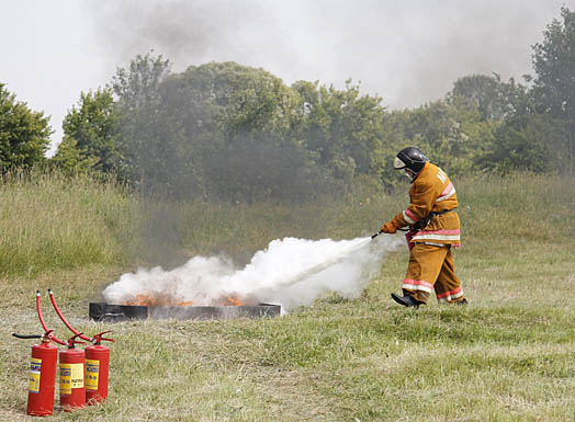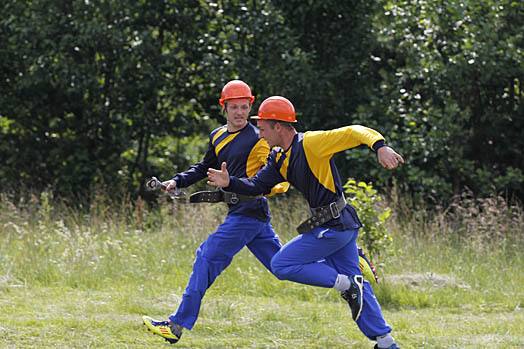 Пока работницы предприятий демонстрировали свои знания и навыки в области оказания первой медицинской помощи, мужчины соревновались на полосе препятствий, состоящей из четырёх этапов. Эстафетной палочкой служил пожарный ствол.