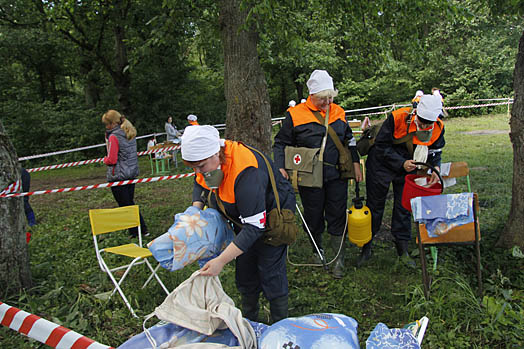 Последние наставления судейской комиссии, касающиеся соблюдения техники безопасности, жеребьёвка, и вот конкурсной программе дан старт! Санитарным дружинам предстояло пройти шесть этапов соревнования в определённой очередности: от проверки оснащения и до работы звена в госпитальном отделении. Команды должны были проявить слаженность и правильность действий при прохождении испытаний. За каждый неверный «шаг» соревнующиеся получали штрафные очки. Как отметила Лидия Алиференко, в этом году подготовка сандружин стала лучше, хотя команды и допускали ошибки: самым трудным этапом для большинства стал инфекционный очаг.