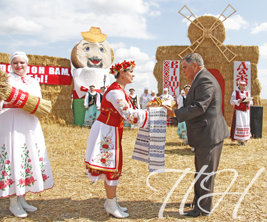 «Добры дзень жыту яравому! Добры дзень гаспадару спраўнаму!» С этими словами венком из колосьев короновали генерального директора ЗАО «АК «Заря» Леонида Моисеева, который со словами благодарности за помощь и поддержку вручил председателю облисполкома Петру Руднику сноп от хозяйства. Весомый вклад в общую копилку — 22050 тонн зерна при урожайности 65 центнеров с гектара! Есть чем гордиться!
