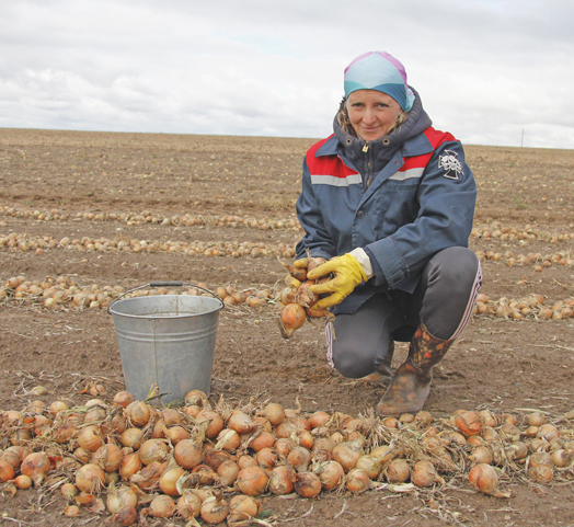 Параллельно в хозяйстве ведется уборка лука. Занятый на этих работах механизатор Николай Валуев говорит, что сейчас техника такая, что и посадит, и выкопает, и весь необходимый уход проведет.