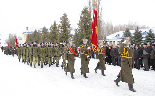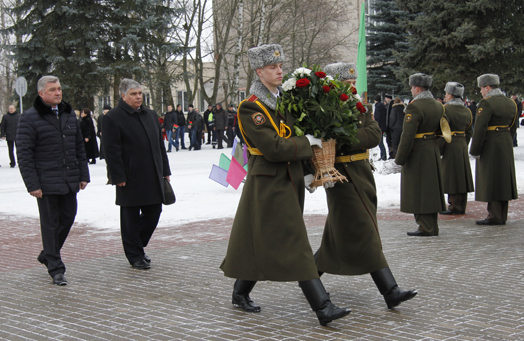 К памятному знаку были возложены цветы. Участники митинга минутой молчания почтили память погибших. Торжественным маршем прошли представители воинских частей и курсанты кадетского училища.