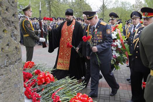 С 70-летием Великой Победы участников митинга поздравил начальник УВД облисполкома Александр Ковальчук, подчеркнув, что в сердцах белорусов никогда не угаснет чувство благодарности живым и павшим воинам за мир на родной земле.