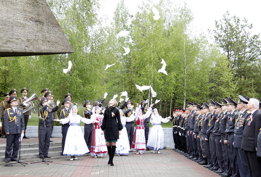 К подножию памятника героическому батальону милиции, совершившему бессмертный подвиг, были возложены венки и цветы. Минутой молчания почтили память погибших. Из 250 милиционеров, оборонявших участок Пашково – Гаи в июле 1941-го, в живых осталось 19. Защитники Родины стояли здесь на смерть. Для всех сотрудников милиции этот мемориальный комплекс давно стал символом служения Отчизне.