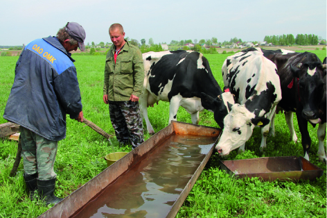 Прямо на пастбище буренкам доставляется вода, в достаточном количестве здесь есть соль.