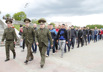 Торжественное мероприятие, посвященное отправке призывников на срочную военную службу в Вооруженные силы Республики Беларусь, состоялось на мемориальном комплексе «Буйничское поле» в четверг. Символично, что слова напутствия перед службой новобранцы получили на том священном месте, где их прадеды и деды – защитники