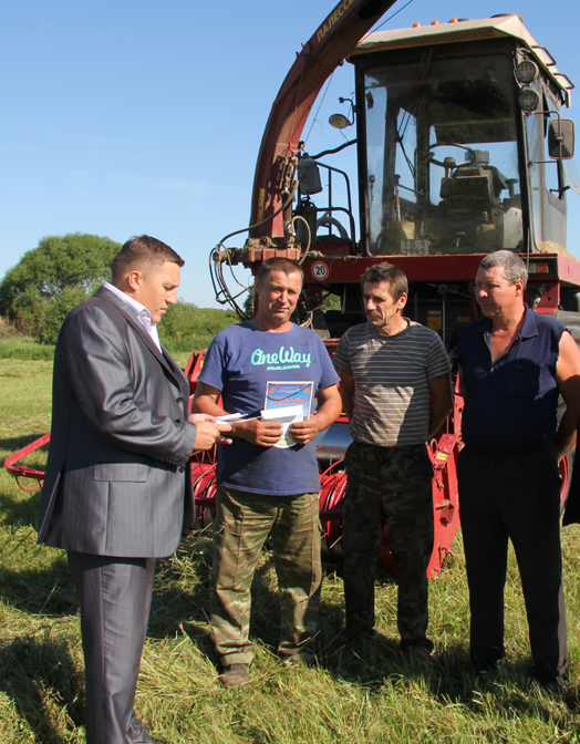 Среди лучших механизаторов руководитель хозяйства отметил Сергея Боровикова, который на Алтесе с КПР-9 скосил трав на площади 557 гектаров. На подборе и измельчении сенажной массы лучшие показатели у Сергея Шуцкого, который на комбайне Полесье-2-250 подобрал 2678 тонн. 1090 тонн на тракторе МТЗ-1221 с ПСТ-9 перевез Виктор Гайков. Волкование сенажной массы на тракторе МТЗ-82 с ГВР-630 производит Петр Денисов, на счету которого 738 гектаров.