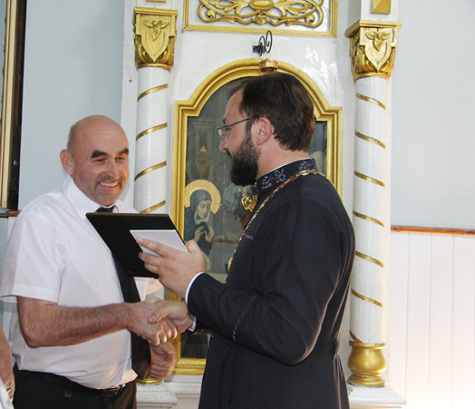 Благодаря поддержке районной власти и стараниям прихожан на базе церкви работает воскресная школа. Отец Николай сердечно поблагодарил председателя райисполкома, вручив ему в подарок икону Спасителя. Иконы священномученика Павлина Архиепископа Могилевского в дар получили все присутствующие с благословлением на добрые дела.