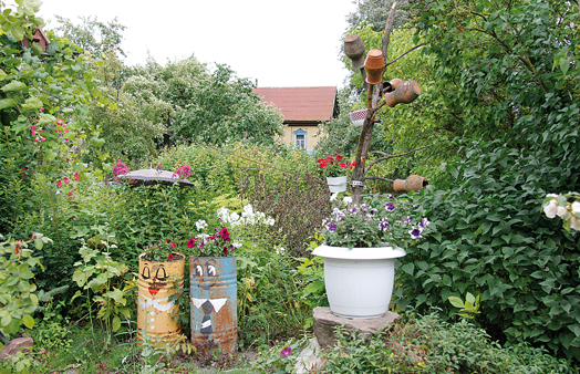 А в огороде все начиналось с цветов — это любовь детства. Муж помогает, клумбы делает, вот чугунки покрасил, получились симпатичные вазоны».